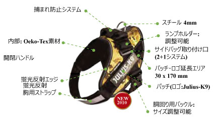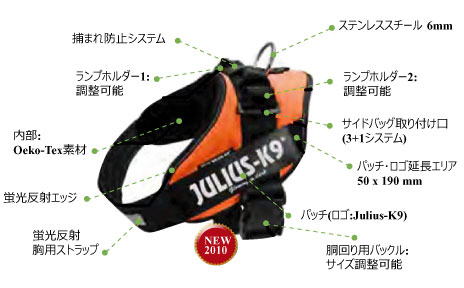 ヨーロッパの多くの警察犬、消防犬、麻薬操作犬、セキュリティ犬、アジリティクラブ、トレーニングクラブなどで利用されています。オーストラリアの警察はJulius-K9を正式に警察犬に使用する契約をしています。ほとんどの部品はヨーロッパ製で、主にドイツ製です。またトレーニングクラブと提携をし、犬の運動と製品の消耗度を研究し、実用的に使用できるように製造過程で研究しています。各種様々なサイズ・色があるため、小型犬から大型犬まで愛犬のおしゃれ、散歩やトレーニングにご利用いただけます。